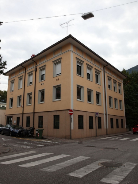 Die Pascolistraße im Bozner Stadtteil Zwölfmalgreien ist vom Bahnhof Bozen aus in für Gehminuten zu erreichen.