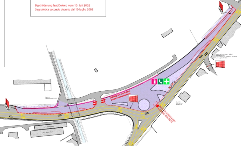Der Verkehr auf der LS 18 ist dieser Zeit nur in Richtung Bozen erlaubt, das Abbiegen in Richtung MeBo ist nicht möglich. Alternativ kann die Zufahrt zur MeBo über Frangart-Pillhof erfolgen oder in Richtung Bozen über den Kreisverkehr "Meraner Kreuzung".