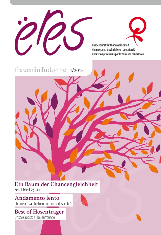 Die neue "ëres – Fraueninfodonne" ist erschienen: Themen der Jubiläumsausgabe sind die wichtigsten Errungenschaften der vergangenen 25 Jahre des Landesbeirates für Chancengleichheit sowie jene Maßnahmen und Aktionen, die dazu beigetragen haben, dass sich die Südtiroler Gesellschaft in vielen Punkten zu Gunsten der Frauen verändert hat.