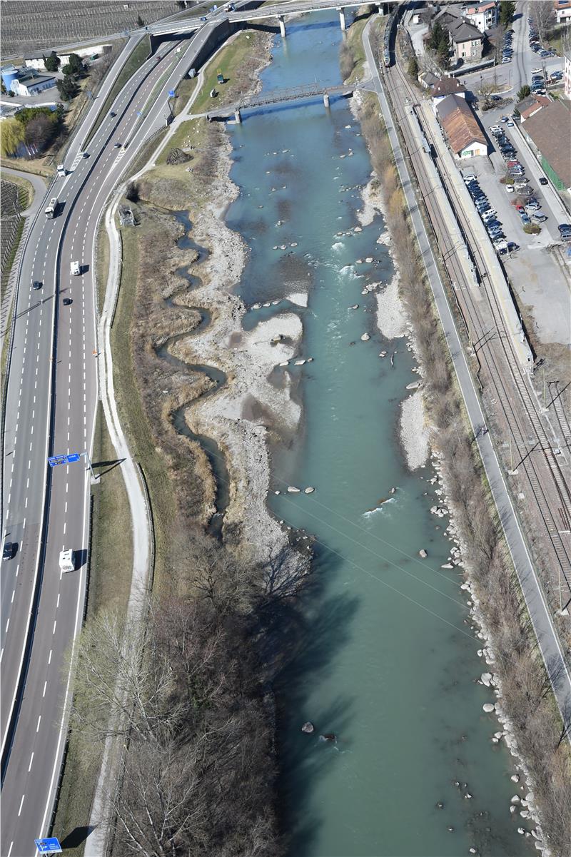Vor fünf Jahren wurde das Flussbett der Etsch im Bereich des Bahnhofs Lana Burgstall von der Agentur für Bevölkerungsschutz neu gestaltet. Die Etsch wurde aufgeweitet, die Ufer wurden neu strukturiert. Durch die naturnahe und unregelmäßige Gestaltung der Ufer, das Einbringen von Störsteinen sowie das Ausheben von Vertiefungen wurde der Fischlebensraum aufgewertet.