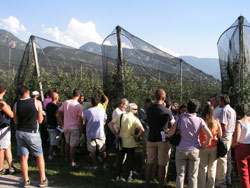 Herausgefunden wurde dabei beispielsweise, dass Hagelnetze nicht nur vor Unwetterschäden schützen, sondern auch gegen Schädlinge wie die Obstmade von Nutzen sind und zudem ausdünnend wirken. "Wir haben im Rahmen unserer jahrelangen Untersuchungen bei Anlagen mit starkem Befall festgestellt, dass das Einwickeln der Bäume mit Hagelnetzen im Folgejahr den Befall mit Obstmaden komplett unterbindet. Offenbar stören die Netze die Entwicklung der Falter", erklärt Kelderer. Zudem können die Netze ausdünnend auf die Apfelbäume wirken. Trägt der Baum zu viele Früchte, leiden nämlich die Qualität und Lagerfähigkeit der Früchte.