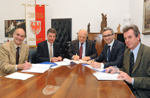 Zwar bestehen zwischen dem Versuchszentrum Laimburg und der Universität Bozen bereits etliche Kontakte, diese Verbindungen waren bisher jedoch nicht formell in einem Vertrag geregelt. Damit die Zusammenarbeit zwischen den beiden Forschungseinrichtungen zielgerichtet vertieft werden kann, haben Landeshauptmann Luis Durnwalder für die Laimburg und Präsident Konrad Bergmeister für die Universität heute (1. März) eine Rahmenvereinbarung unterzeichnet.