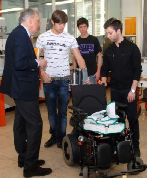 Schüler zeigen LR Bizzo selbst entwickeltes Gerät für Rollstuhlfahrer
