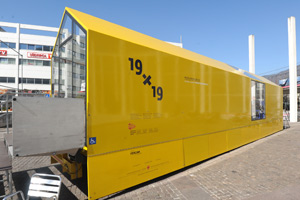 Die Besucher der Kunstmesse "kunStart 12", die derzeit auf dem Messegelände in Bozen Süd stattfindet, werden seit heute Mittag von einem großen gelben Lkw-Anhänger vor dem Messeeingang empfangen. Was auf den ersten Augenblick nach einem Falschparker aussieht, ist in Wirklichkeit ein Kunsttransport im wahrsten Sinne des Worte: Im auffälligen, von der Landesregierung in Auftrag gegebenen Container finden sich Videos, Fotos, Landkarten und Texte, mit denen die Kandidatur Südtirols mit den Regionen im Nordosten Italiens zur Europäischen Kulturhauptstadt 2019 erläutert und gleichzeitig erklärt wird, welche Erfahrungen andere Gebiete als Kulturhauptstadt gemacht haben.