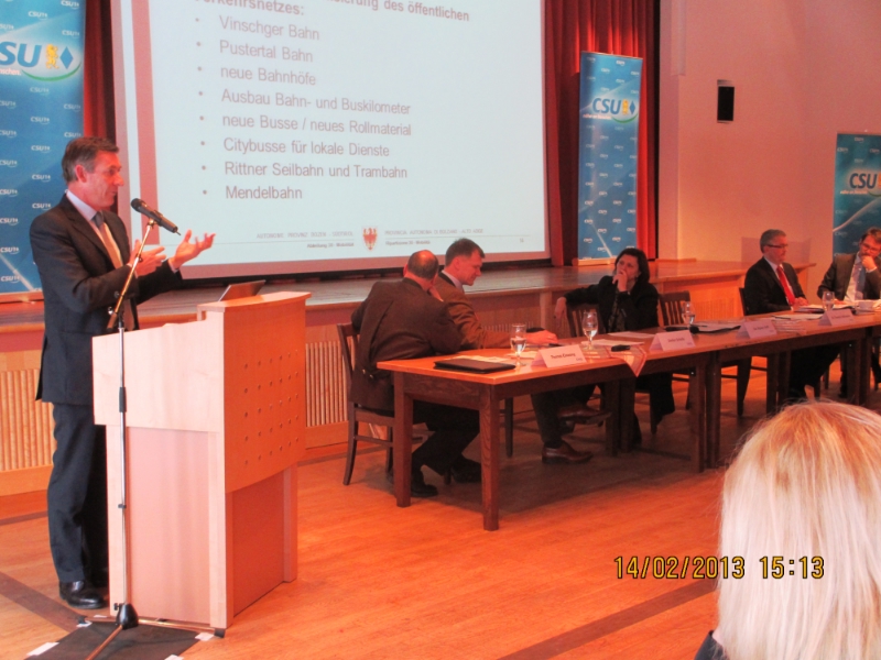 LPA - Auf der Suche nach Modellen für einen leistungsfähigen und kostengünstigen öffentlichen Personennahverkehr (ÖPNV) sind die politischen Verantwortlichen des Landkreises München auf Südtirol gestoßen: vor einigen Tagen wurde Mobilitätslandesrat Thomas Widmann von der deutschen Bundesministerin Ilse Aigner zu einer Tagung in Oberbayern geladen, um dort das Südtiroler Nahverkehrsmodell zu präsentieren.