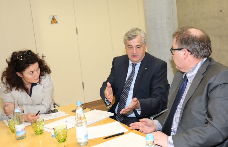 Gesprochen wurde auch über die Verknüpfung von iMONITRAF! mit der makroregionalen Strategie EUSALP, die gerade am Entstehen ist. Die erarbeiteten technischen Strategien und angedachten Maßnahmen könnten so verstärkt auf politischer Ebene Gewicht bekommen, so Mussner, Felipe und Gilmozzi.