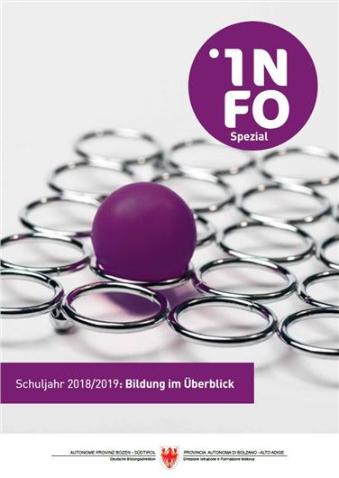 In diesen Tagen hat die Deutsche Bildungsdirektion die druckfrische Broschüre "INFO Spezial" an alle deutschsprachigen Kindergärten und Schulen im Land verteilt. Die Schrift enthält die aktuellen Daten zu den Kindergärten, Grund-, Mittel- und Oberschulen, den Berufs- und Fachschulen mit deutscher Unterrichtssprache sowie zu den deutschen und ladinischen Musikschulen des Landes.