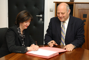 Hilfsmaßnahme besiegelt: Rektorin Rita Franceschini und LH Durnwalder