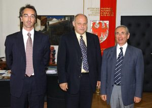 (LPA) Einen Abschieds- und Antrittsbesuch zugleich gab es heute (14. Juli) im Büro von Landeshauptmann Luis Durnwalder im Palais Widmann: Giovanni Stona, scheidender Direktor des italienischen Automobilclubs (ACI) in Bozen, war gekommen, um seinen Nachfolger Guido Sommavilla vorzustellen. Und gleichzeitig Bilanz über die gemeinsamen Projekte von Land und ACI zu ziehen, die sich vor allem um die Verkehrserziehung drehen.