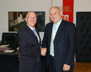 (LPA) Der scheidende Regierungskommissar Giustino Di Santo ist heute (21. Juli) von Landeshauptmann Luis Durnwalder verabschiedet worden. "Die Zusammenarbeit mit dem Regierungskommissar war eine gute, auch wenn wir in verschiedenen Fragen nicht immer einer Meinung waren", so der Landeshauptmann nach dem Abschiedsbesuch.