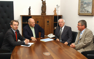 Zusammenarbeit diskutiert: Landesrat Laimer, LH Durnwalder, LH van Staa und TIWAG-Chef Wallnöfer (v.l.n.r.)