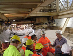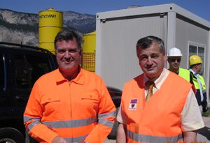 LPA - Die große Straßenbaustelle in Martignano bei Trient hat sich Bautenlandesrat Florian Mussner heute, 4. August 2005, gemeinsam mit seinem Trentiner Amtskollegen Silvano Grisenti angeschaut. Landesrat Mussner zeigte sich von den Arbeiten für die rund 4,2 Kilometer lange Tunnelverbindung der Stadt Trient mit dem Valsugana-Tal beeindruckt. Mit einer besonderen Fräsmaschine werden pro Tag im Schnitt 15 bis 25 Meter des Tunnels aufgefahren. Landesrat Mussner hat sich bei seinem Besuch im Trentino mit Grisenti auch über andere Straßenbauprojekte in Südtirol und dem Trentino beraten.
