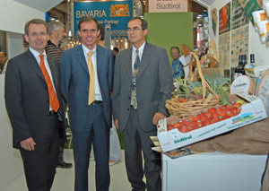 LPA - Worauf es bei einer gesunden Ernährung ankommt, wie man gesunde Lebensmittel erkennt und wie Nahrungsmittel kontrolliert werden, erfahren die Besucher bei der diesjährigen Herbstmesse in Bozen auf dem Stand des Landes. Die Landesräte Werner Frick, Michl Laimer und Richard Theiner haben sich heute, 15. September, selbst beim Messestand des Landes, den die Ressorts für Gesundheit, Umwelt, Handel und Landwirtschaft gemeinsam aufgebaut haben, umgeschaut.