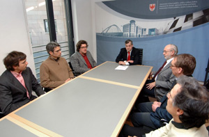 (LPA) Der vor kurzem neu gewählte Vorstand der Architektenkammer hat gestern (19. Jänner) Bautenlandesrat Florian Mussner seine Aufwartung gemacht. Bei der Aussprache ging es vor allem um die Anliegen innovativer Architektur, um öffentliche Wettbewerbe, Honorare und nicht zuletzt um einen verstärkten Austausch zwischen der öffentlichen Hand als größtem Bauträger im Land und den Südtiroler Architekten.
