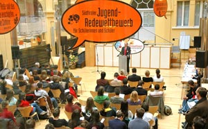Die Teilnehmer konnten ihre Stellungnahme in drei verschiedenen Formen darbieten. Zum einen als klassische Rede, die einem bereits im Vorfeld wohlüberlegten Konzept folgte, als Spontanrede, bei der das zu behandelnde Thema erst kurzfristig vor Ort gezogen wurde und als „Neues Sprachrohr“. Diese neue Form, die im vergangenen Jahr bereits erprobt wurde und zwar nicht zu den konventionellen Reden gehört, aber gerade durch besondere Kreativität besticht, erlaubte die Teilnahme in Gruppen bis zu drei Teilnehmern. Der Phantasie waren dabei keine Grenzen gesetzt - Versform, Kurzkabarett, Musikbegleitung, alles war möglich.