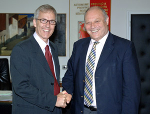 Auch die RAI-Konvention war heute Gegenstand der Unterredung im Palais Widmann. "Die Konvention wird derzeit mit Rom verhandelt", so Durnwalder, "und da geht es um die zentrale Frage, wie viel Geld in Zukunft für den Sender Bozen zur Verfügung stehen wird." In diesem Zusammenhang hat der neue RAI-Koordinator den Landeshauptmann auch darüber informiert, welche neuen Programme der Sender Bozen sei es im Fernsehen, sei es im Hörfunk plane.