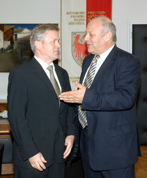 LPA - Der neue deutsche Generalkonsul in Mailand Axel Hartmann hat Landeshauptmann Luis Durnwalder heute, 22. September, im Palais Widmann in Bozen einen Besuch abgestattet. Beim Treffen wurde über die Zusammenarbeit zwischen Südtirol und Deutschland und die politische und wirtschaftliche Situation in den beiden Ländern gesprochen.