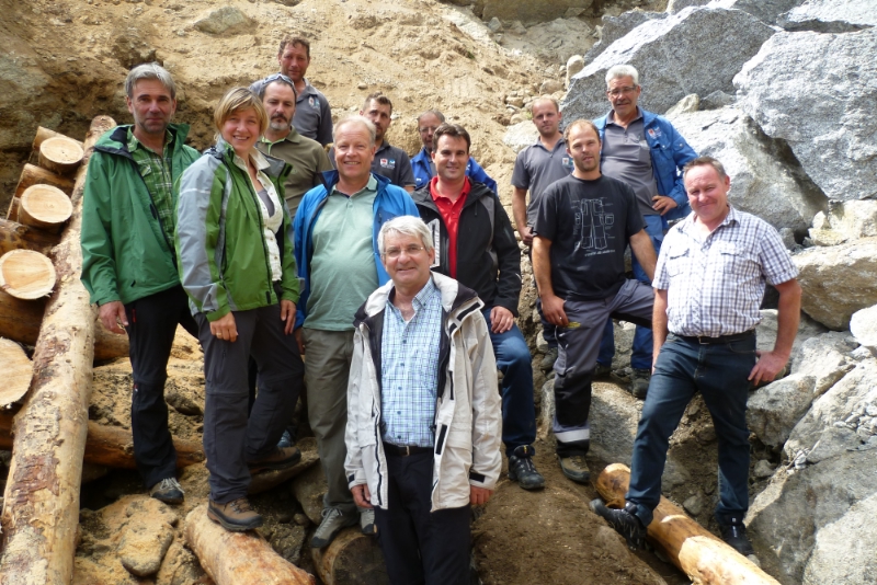 Die Baustelle auf der Tablander Alm oberhalb Partschins war das zweite Ziel des heutigen Lokalaugenscheines durch Landesrat Schuler. Im August 2008 hatte ein Unwetter Partschins heimgesucht. Rund 70.000 Kubikmeter Material aus dem Ziel-, dem Holer und dem Höllentalbach hatten den Sportplatz und den Fahrradweg verwüstet, die Straße durch den Vinschgau verlegt, Obstanlagen zerstört, die Stromversorgung von Tabland und Rabland unterbrochen und vier Brücken mitgerissen. Nach einer Reihe von Sicherungsmaßnahmen ist das Landesamt für Wildbach- und Lawinenverbauung West zurzeit dabei im Oberlauf des Höllentalbaches ab der Tablander Alm eine Sperrenstaffelung mit rund 30 Sperren zu errichten. Der Bach hat sich in den vergangenen Jahren hier stark eingetieft, weshalb bei einem Unwetter größere Mengen Material abgehen und wieder bis nach Partschins vordringen könnten.