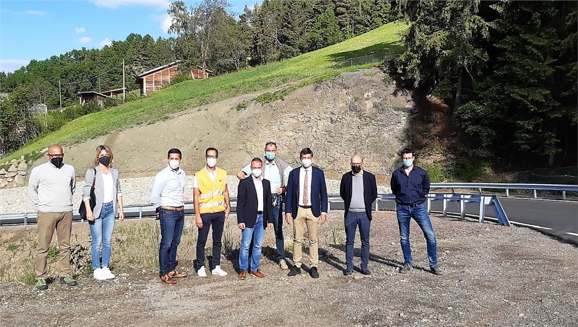 Nun ist der betroffene 700 Meter lange Straßenabschnitt umfassend gesichert, übersichtlich und gut befahrbar. Davon konnten sich Mobilitätslandesrat Daniel Alfreider, Bürgermeister Stefan Leiter, Tiefbauabteilungsdirektor Valentino Pagani, Vertreter der Gemeinde und der Baufirma sowie die Techniker heute (10. Juni) ein Bild machen. Die im Frühjahr 2020 begonnenen Arbeiten sind nun abgeschlossen. Der Eingriff war laut Landesrat Alfreider "besonders wichtig für die Sicherheit der Verkehrsteilnehmer und auch für die gute Anbindung der Dörfer an die Busse des öffentlichen Nahverkehrs. Auch die Fuß- und Radmobilität wurde schon mitgedacht, indem im Zuge der Felssicherungsarbeiten Vorbereitungen für einen künftigen Fuß- und Radweg geschaffen wurden." Die Zeit der Verkehrsbeeinträchtigungen auf diesem Straßenabschnitt sollte nun vorbei sein, sagte Alfreider, der den Bürgerinnen und Bürgern für die Geduld dankte. Zufrieden zeigte sich auch Bürgermeister Leiter: "Wir haben nun einen weiteren Abschnitt unseres Straßennetzes gesichert und für weitere Mobilitätsformen vorbereitet, auch die nötigen Schutzmauern wurden mit ortstypischem Schieferstein gut in die Landschaft eingefügt." Die Zusammenarbeit zwischen Land, Gemeinde und Grundbesitzern habe bestens funktioniert, lobte der Bürgermeister.