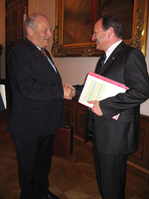 LPA - Die Vorarbeiten zum Brenner-Basistunnel und die Gründung der Brenner-Basistunnel-AG standen im Mittelpunkt der Aussprache zu der heute Morgen (Donnerstag, 8. Juli) in Wien der österreichische Vizekanzler und Minister für Verkehr, Innovation und Technologie, Hubert Gorbach, Landeshauptmann Luis Durnwalder empfangen hat. Das Treffen stand im Lichte der gestrigen Zustimmung des Nationalrates zur Errichtung der Aktiengesellschaft sowie zum italienisch-österreichischen Staatsvertrag zur Errichtung des Brenner-Basistunnels. An der Aussprache nahmen auch Verkehrslandesrat Thomas Widmann und der österreichische Nationalratsabgeordnete Klaus Wittauer teil.