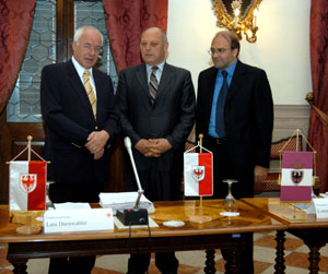 Die Regierungschefs von Tirol, Südtirol und Trentino: Herwig van Staa, Luis Durnwalder und Lorenzo Dellai (v.l.n.r.). FOTO: LPA/Ravanelli.
