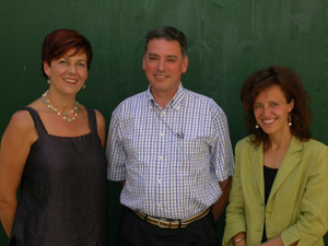Der langjährige Direktor im Amt für Kultur, Othmar Parteli, mit Landesrätin Kasslatter Mur und seiner Nachfolgerin Karen Obexer Mahlknecht
