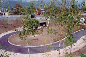 Der Fahrradweg überquert den Platz, auf welchem sich ein inzwischen abgebrochenes Bahnwärterhaus und ein Magazin der Eisenbahn befanden, unterquert die Eisenbahnlinie und bindet sind an die Feldturnerstrasse an.