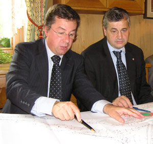 LPA - Wie die neue Gadertaler Straße in Zwischenwasser weitergeführt werden soll, darüber hat Bautenlandesrat Florian Mussner auf Einladung der Gemeinde Enneberg am gestrigen Mittwoch, 8. Oktober 2004, mit den dortigen Gemeindevertretern und den Anrainern der Fraktion Zwischenwasser beraten.