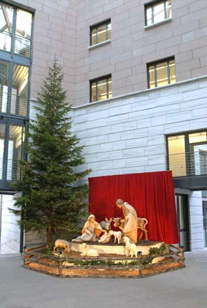Seit einigen Tagen steht die große Krippe im Innenhof des Landhauses 2, den Amtsräumen des Landesrats für die ladinische Kultur Florian Mussner. Hunderte Passanten haben das Kunstwerk schon bewundert. Wenn man vom Bahnhof kommt gibt der Eingang in den Innenhof des Landhauses nämlich den Blick frei auf die hölzerne Krippe. „Die Grödner Holzbildhauer haben mit der Wanderkrippe einen Weg gefunden, die Tradition und die ladinische Kultur auch außerhalb des Tales bekannt zu machen“, sagt Landesrat Mussner.