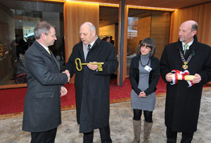 vëijen che la cësa se prejënta a na maniera moderna da pudëi mustré ca” à dit Luis Durnwalder. La cësa dl Parch naturel, fata do i proiec de Stefan Burger y Birgit Rudacs, à doi partimënc cun n peton de culëur papyrus y nce pertes de lën. Per ti ruvé permez plu saurì nce a pe iel unì fat n puent sëura l ruf de Funes. Do avëi tenì ite la mpermetuda dla cësa dl parch à l Presidënt dla provinzia nce cunedì che n uel tosc mëter man cun la streda de zircunvalazion per S. Piere de Funes. L zënter nuef dëssa tré l nteres di jëuni per la natura a per la stravardé. Ma duta la populazion dl post, che do statistiches se nuzea puech de chësta cëses, dëssa giapé nteres y pascion per la natura. L zënter nuef dëssa vester de utl ajache la jënt se rënde plu cont dla marueies che pieta la natura te chisc raions. “Tl medemo mumënt pieta chësta cësa nce la puscibltà de mparé a cunëscer miec l patrimone naturel Unesco” à sorissà l assessëur Michl Laimer.