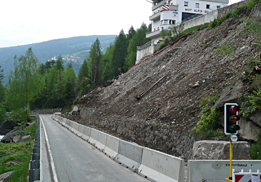 Purons manacia de tumé sun la streda dedora da Puntives: i lëures ie bele unì scric ora; foto USP/Stuffer.Riesc do Puntives, de viers de Pruca, fovel for da avëi festide che unissa ju sasc dal rone sëura streda. La truepa plueies dl’ultima enes à fat muever vel purons y nsci ne fova nia plu garantida la segurëza sun streda. Te n ntervënt de prëscia iel unì trat ju l material melsegur y tlo iel nce unit ora purons de 15 nchin 20 cubich. „Per garantì la segurëza sun chësc toch de streda iel debujën de fé da nuef l mur de sustëni sun na lunghëza de 90 metri“ spiega l assessëur Florian Mussner. L Assessorat provinziel per lëures publics à scrit ora de prëscia i lëures per n custimënt udù danora de 230.000 euro. Aldò dl geologh Claudio Carrara, respunsabl de chisc lëures, fejen cont de pudëi te n trëi enes scumencé a fé sun l mur da nuef. Per i lëures nstësc iel udù danora nchin a 40 dis.
