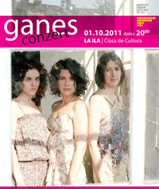 USP - En sabeda al pröm d’otober saràl da aldì por le pröm iade le grup Ganes tla Val Badia. Les chertes por le conzert dales 8 da sëra tla Ciasa de Cultura a La Ila é bele dötes gnüdes venüdes. Chësc desmostra le gran suzès por la scomenciadia dl Istitut Ladin Micurà de Rü, che à orü ti dè l’ocajiun ala jënt ladina de aldì a Ciasa le trio badiot che à portè les Cianties ladines al publich foradecà.