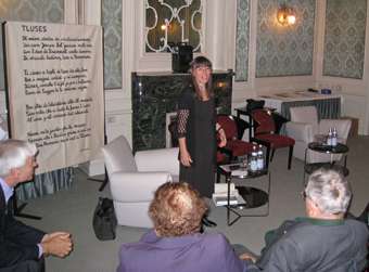 L prufessëur Hans-Georg Grüning che à letorà la traduzion tl tudësch, à rujenà dl merit dl’autora, auzan ora la deficulteies che n à dantaldut à ciancé lirica ulache duta la mujiga dla rujeneda y nce i juesc de paroles va suvënz perdui tla traduzion. L prufessëur Reinhard Kacianka dl’università de Klagenfurt à purtà dant la minonga che ciancé leteratura uel dì traspurté l’anima te n autra rujeneda y che la traduzion ie ënghe n’ert. Ël auza ora la mpurtanza che un n autor y un n ‘autora possa scrì te si rujeneda y dla mpurtanza che sun la rujeneda vëniel cialà sul post.