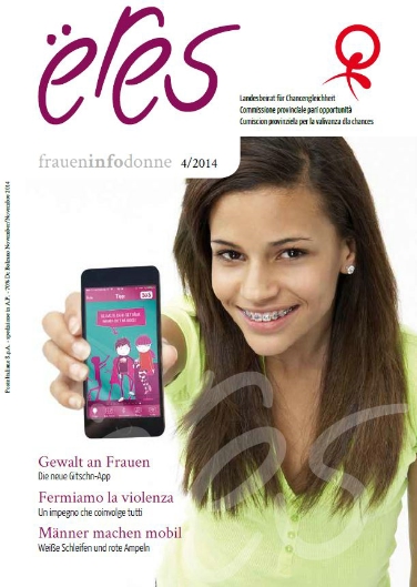 Le numer nü dla revista d’informaziun dla Comisciun por l’avalianza dles oportunitês trata en ocajiun dl Dé internazional cuntra la violënza sön les ëres da inier (25 de novëmber) dandadöt tematiches che reverda la prevenziun y la sensibilisaziun dles formes de violënza cuntra les ëres. Öna dles novitês te chësc vers é l’app por mitans y ëres jones nöia dal inom „Gitschn App/App per le ragazze“. L’app da püch é online y po gnì desćiariada debann. Por l’assessuria por l’avalianza dles oportunitês Martha Stocker é chësta na metoda inovativa y moderna por arjunje dantadöt les generaziuns nöies che s’anüza de smartphones por sensibilisé sön la tematica y por ti pitè n meso de defenüda y de pröm aiüt te caji de prigo. L'app à insciö na funziun cun n botun "SOS" che po gnì adorè te caji de prigo por ti menè n messaje d’aiüt y d’intervënt ales forzes dl ordinn.