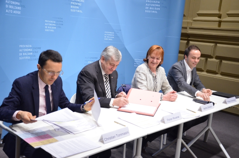 L’assessuria por la sanité Martha Stocker y i assessurs por la formaziun Florian Mussner, Christian Tommasini y Philipp Achammer à firmé incö (13/03) por le pröm iade n’acordanza por le reconescimënt abonora de dificoltês d’aprendimënt de scolars y scolares. Tres chësta acordanza dessel gnì smendrì les dificoltês te scora y alisiré le sostëgn por la cura danter le sistem sanitar y scolastich.