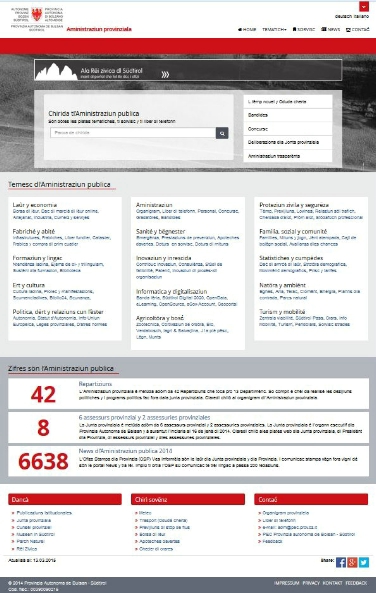 Sce pro la Rëi zivica se müda ma la misciun, de plü sarà i cambiamënć pro la presënza online dl'Aministraziun provinziala che ciafa, deboriada cun n demane nü, inće na süa plata d'azès y n motor de chirida efiziënt fora dla ćiasa Google, che ti po pormez a düć i contignüs y sorvisc dl'aministraziun interna.