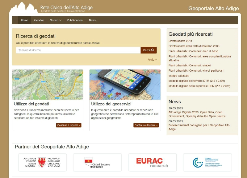 Le geoportal nü fej pert dla strategia de svilup „Südtirol digital 2020“ , sciöche al spliga le diretur dla Repartiziun Informatica Kurt Pöhl che sotlignëia che le proiet se basëia söi trëi pilastri dla partezipaziun, dla segurëza y dla trasparënza. Indöt él gnü colié 180 series de dac tres na rëi de colaboraziun. La maiú pert dles series di dac é debann y á na lizënza „free“: dal teritore al paesaje, dal cataster ales strades, dales misciuns ales localités.