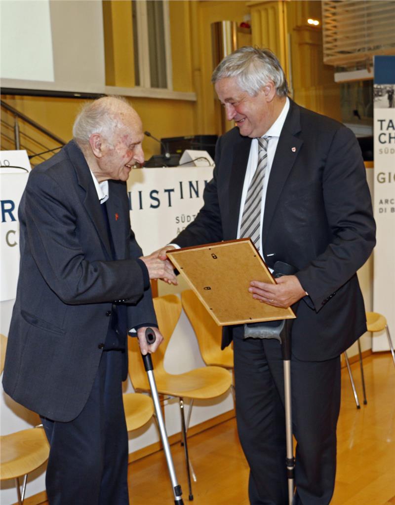 Lecort a sn. Cristl Moroder dl assessëur ladin Florian Mussner