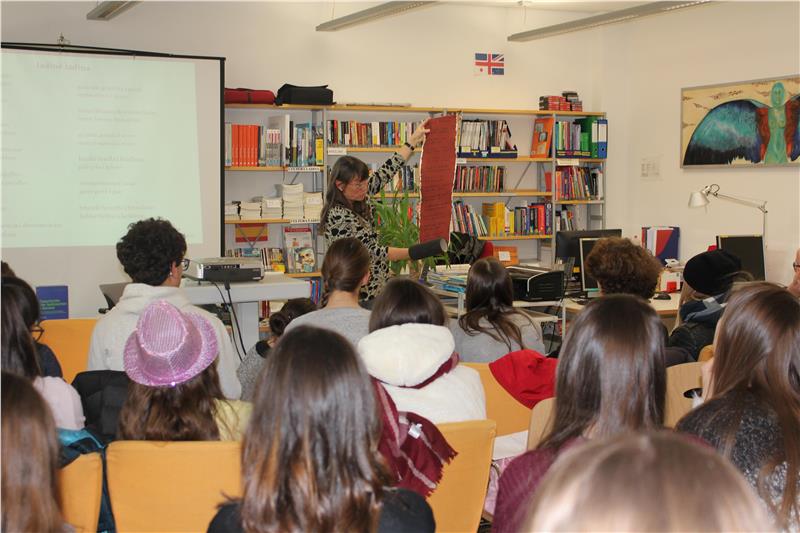 La pröma incuntada é gnüda a se le dé ai 23 de forá cun l’auturia y scrituria Rut Bernardi che á tigní n domisdé de letöra de sües operes tl Istitut Tecnich Economich (ITE) “Raetia” a Urtijëi. Ala letöra ál tut pert indöt 36 studëntes y studënc. La scrituria ladina á daimpröma presenté na panoramica dla storia dla leteratöra ladina, por spo lí dant n valgnönes perts de sües operes leterares y liriches. Le fin dl’incuntada é ince sté, aladô di organisadus, da ti porté plü daimpró ai studënc y ales studëntes la gran richëza de contignüs y de poscibilités de espresciun che le ladin á te formes leterares desvalies: insciö ne pó le ladin nia ma gní adoré por les sorts de tesć plü desvalies, mo ince por operes de aorela cörta y da n contignü plü sot. L’auturia Rut Bernardi é conesciüda danter l’ater por sües inrescides scientifiches dl ladin y dantadöt ince por sües operes leterares y teatrales. Ara é portadëssa dl “Premio Ostana – scritture in lingua madre – Premio Nazionale” y dla decoraziun al mirit dl Land Tirol.