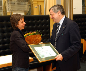 LPA – Barbara Tavella che à venciù l cuncors per artisc jëuni ladins „Premia flus d’aisciöda“ ie ncuei, mierculdi 31 de merz unida premieda a Bulsan dal assessëur ladin Florian Mussner. Ad’ëila ti vëniel dat la puscibltà de mëter ora si lëures a Bulsan. A chësta maniera giapa Tavella la puscibltà de lascé udëi si lëures y nsci n pue’ de ert ladina a n majer publich, à dit Mussner.
