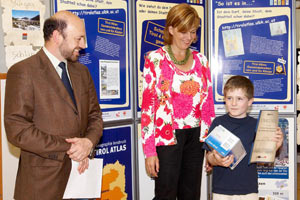 Il concorso "Descrivi il tuo Comune", nato all'interno dell'iniziativa Interreg III A "Atlante del Tirolo", si è concluso oggi (mercoledì 14) a Bolzano con la consegna dei primi agli alunni partecipanti ad opera dell'assessora Sabina Kasslatter Mur e del direttivo dell'Istituto di geografia dell'Università di Innsbruck. Il primo premio è andato a un giovane altoatesino, Martin Leon De Le Roi di Missiano. Con un premio speciale si è distinta Mara Gander di Malles.