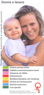 Il gruppo di lavoro "Donne e lavoro" all'interno del Comitato provinciale per lepari opportunità ha pubblicato un opuscolo omonimo per aiutare le donne lavoratrici a conoscere i propri diritti e doveri in caso di gravidanza e maternità ed ad orientarsi in caso di difficoltà. Il folder, presentato questa mattina dalla presidente del Comitato Julia Unterberger e dall'autrice Ulrike Egger, è in distribuzione gratuita presso l'Ufficio donna in via Crispi 3 a Bolzano.