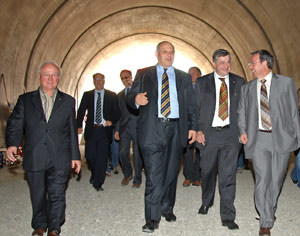 Il presidente Durnwalder e l'assessore Mussner durante il sopralluogo nel tunnel (Foto USP/Pertl)