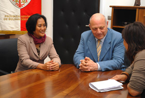 Nel corso dell'incontro odierno con la signora Ruth Salditos e Rudi Dalvai il presidente della Provincia Durnwalder si è informato sugli sviluppi del progetto che la Provincia di Bolzano gestisce direttamente sull'isola di Panay (a circa 500 chilometri a sud della capitale Manila) nel comune di Oton, dove la presidentessa di "Panay Fair Trade Cooperation" (un'associazione non profit locale che si occupa del marketing ad un prezzo equo e solidale dei prodotti di cooperative di contadini locali), risiede. E proprio del sindaco di Oton, ovvero della signora Carina V. Flores, la signora Salditos ha portato i saluti a Durnwalder ed un regalo di riconoscenza, ricambiato a sua volta dal presidente della Provincia di Bolzano con due volumi sulleDolomiti ed i Giardini di Castel Trauttmansdorff.