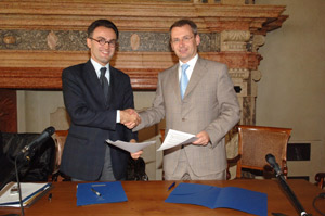L'assessore Laimer ha firmato l'accordo di cooperazione con il vicepresidente della Provincia di Bologna Giacomo Venturi