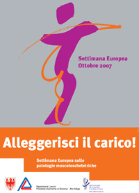 “Alleggerisci il carico”, questo il motto della settimana europea 2007 per la sicurezza sul luogo di lavoro. Al centro dell’iniziativa, che si svolgerà dal 22 al 26 ottobre, le patologie muscoloscheletriche, che risultano essere tra i disturbi più diffusi.