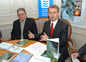 L’assessore Laimer assieme al responsabile editoriale ha presentato il volume "Südtirol - Heilende Wasser", di cui è autrice Eva Lechner, sulle funzioni curative dell'acqua e sui bagni altoatesini i cosiddetti “Bauernbadl”. Il volume è stato realizzato in stretta collaborazione con l’Ufficio gestione risorse idriche. In Alto Adige sono in funzione 13 bagni, 5 bagni sono stati trasformati in centri terapeutici, altri 22 ex bagni fungono quale esercizi ricettivi e 31 bagni sono stati chiusi definitivamente. Quattro le acque minerali registrate.