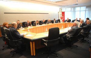 L'incontro di Durnwalder con i rappresentanti di banche locali e fondi pensione (Foto USP/Bettina Ravanelli)