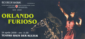 Si svolgerà venerdì 24 aprile, alle ore 11,00, presso la Haus der Kultur di Bolzano la rappresentanzieon dello spetttacolo di teatro danza “Orlando Furioso” allestuto dall’Associazione Bricabrac di Bolzano con il patrocinio dell’Intendneza scolastica italiana.