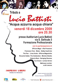 Settima edizione per il "Tributo a Lucio Battisti", evento musicale diventato ormai uno dei classici concerti di Natale a Bolzano. L'inziativa, organizzata dal centro giovani Acras, è patrocinata dalla Formazione professionale in lingua italiana, ed è arricchita dalla partecipazione degli allievi di On Stage, il corso per operatori dello spettacolo. L'appuntamento è per venerdì 18 dicembre al Centro "Einaudi".
